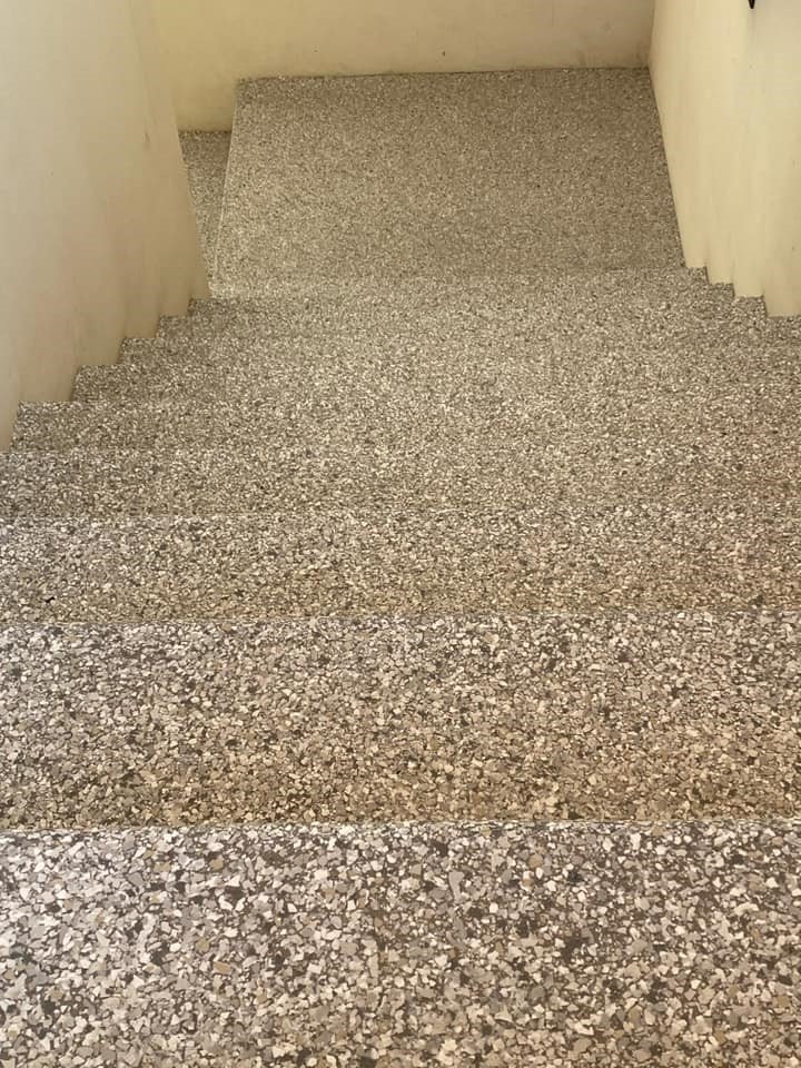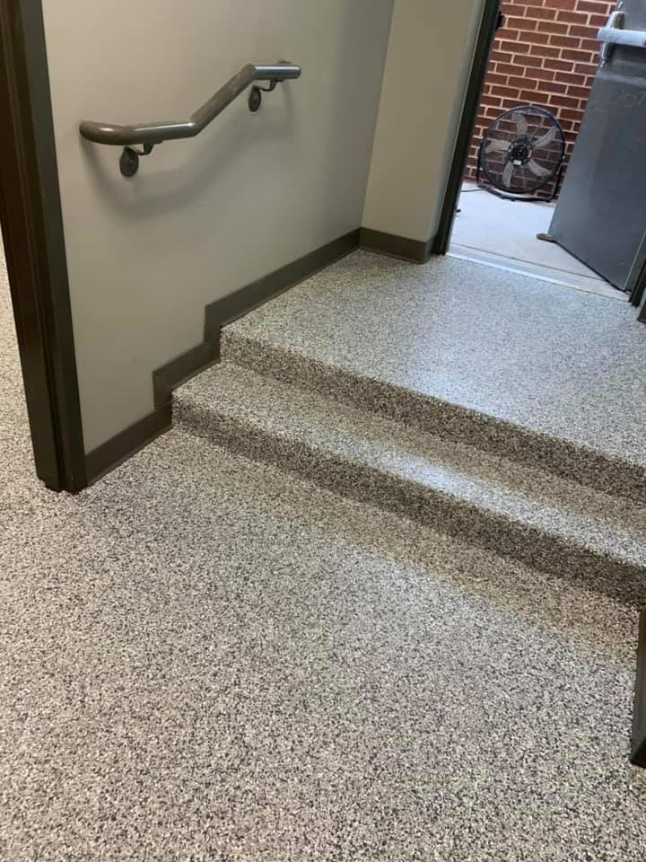 • Moisture Resistance: Restrooms and locker rooms are often damp or humid, leading to mold and bacterial growth in traditional flooring. Our moisture-resistant coatings prevent water penetration, helping maintain hygienic conditions.